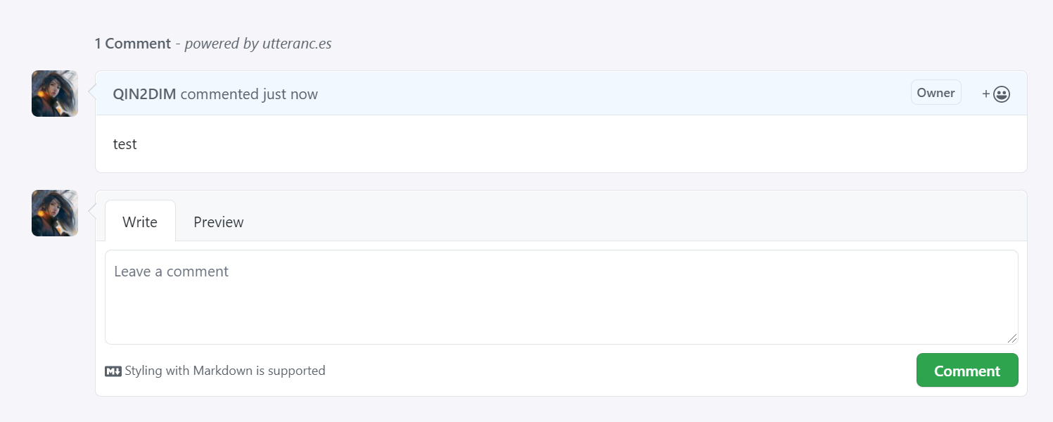 # ~/config.yaml # 再次声明,本博客使用 Stack 主题作为分享参考,此主题使用.yaml 格式配置文件,且预先写好了 utterances 接口网页,意味着仅需改动配置文件就能使用。 # 如果你至此的所有环境与操作都与作者相同,那恭喜你马上就要通关了! # 如果你的主题用其他格式文件,注意语法的调整。 # 如果你的主题没有携带 utterances 脚本代码,请在~/layouts/partials/comments/provider/ 目录下新建一个 utterances.html 文件,并在里面输入下一个代码块中的内容。如何判断你的主题是否支持 utterances 呢? 查看 ~/themes/<your-theme>/layouts/partials/comments/provider/ 目录下是否存在 utterances.html 既可。 # 全局配置 params: # 留言系统设置 comments: enabled: true # 评论系统提供商。目前支持的有:disqus utterances remark42 vssue waline twikoo giscus gitalk provider: utterances # 关于 utterances 的具体配置 utterances: # repo 必填项,指向你的`comments-repo`,参照写法如 qin2dim/blog-comments 注意别加.github.io repo: <GithubUserName>/<RepositoryName> # issueTerm: 必填项,issue标题的切分规则,可写 pathname title url issueTerm: pathname # theme 必填项,评论区的主题 # 可选 github-light github-dark preferred-color-scheme # github-dark-origin lcy-dark dark-blue photon-dark boxy-light theme: github-light # label 可选项,提交的issue的默认标签,不填则不打标签。 label:// utterances.html template of theme, Stack <script src="https://utteranc.es/client.js" repo="{{ .Site.Params.comments.utterances.repo }}" issue-term="{{ .Site.Params.comments.utterances.issueTerm }}" {{ with .Site.Params.comments.utterances.label }} label="{{ . }}" {{ end }} crossorigin="anonymous" async > </script> <style> .utterances { max-width: unset; } </style> <script> function setUtterancesTheme(theme) { let utterances = document.querySelector('.utterances iframe'); if (utterances) { utterances.contentWindow.postMessage( { type: 'set-theme', theme: `github-${theme}` }, 'https://utteranc.es' ); } } addEventListener('message', event => { if (event.origin !== 'https://utteranc.es') return; setUtterancesTheme(document.documentElement.dataset.scheme) }); window.addEventListener('onColorSchemeChange', (e) => { setUtterancesTheme(e.detail) }) </script>Install utterances for your ‘comments-repo’ .